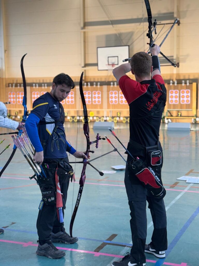 Enfin nos jeunes, chez les hommes, deux archers de 2ème année étaient qualifiés. Malgré un début difficile pour Timéo en U18, il est resté déterminé et est bien remonté à sa deuxième série mais cela ne lui a malheureusement pas permis de passer le cut pour les duels, il termine à une belle 11ème place. Quant à Raphaël en U21, il a fait une superbe deuxième série à 218 pour son premier tir en trispot qui ne suffira malheureusement pas pour tenter les duels, il termine 5ème, très prometteur pour la suite !